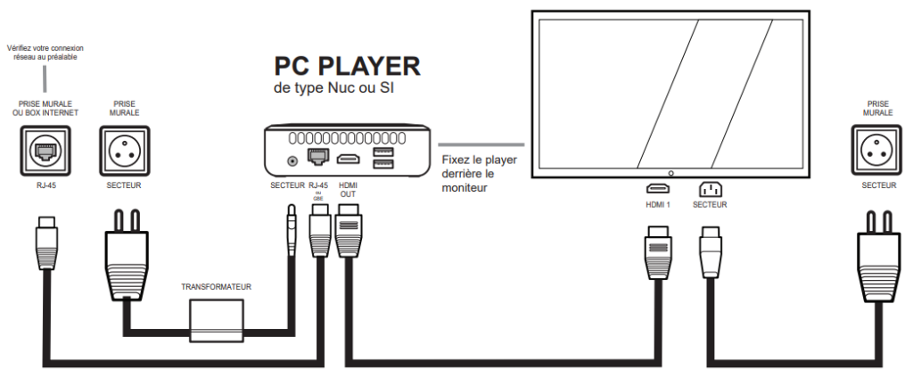 Votre installation est composée d’un moniteur et d’un PC Player indépendant au format NUC.